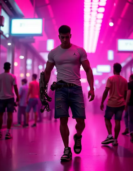 他高度肌肉化、庞大而健壮的身体拥有粗壮、庞大且轮廓分明的大腿,强健、庞大的手臂,宽阔的肩膀,清晰的腹肌和宽大的胸部。