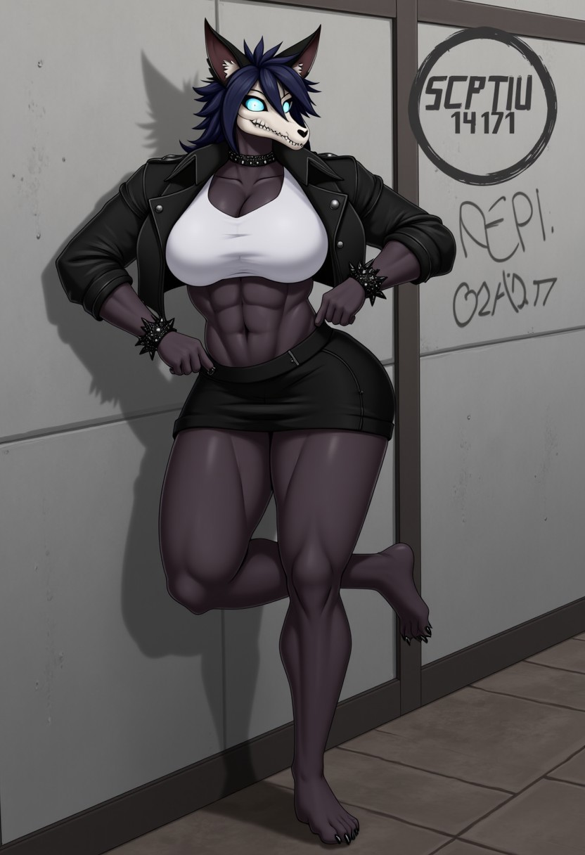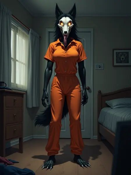 为增加多样性,你可以调整其暴虐程度:更野性、带利爪的生物,或略带人形的形态。提示词的良好起点始终是“一名名为SCP-1471的女性怪物”或“SCP-1471,一名拥有犬类头骨的女性怪物”。你可以添加细节,如“张开嘴,伸出舌头”,甚至尝试调整舌头的长度。