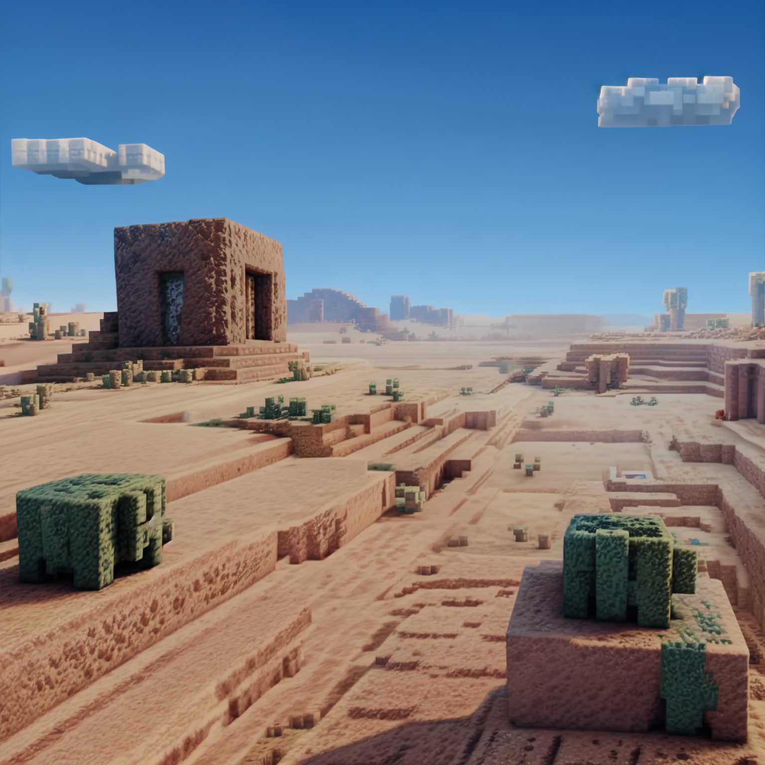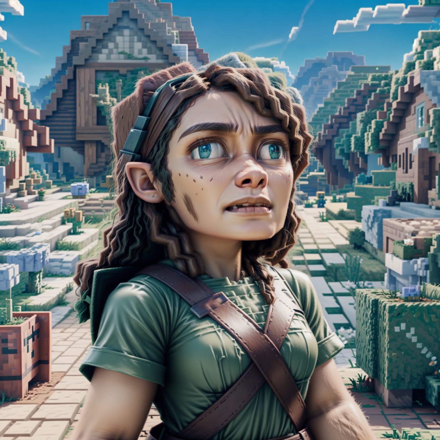 "minecraft movie style"로 트리거하고, "자세한", "사진처럼 사실적인" 또는 유사한 태그를 함께 포함하면 더 나은 결과를 얻을 수 있습니다.