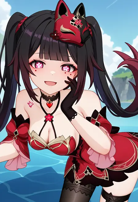 In this V2 I may have overtrained a bit and the honkai outift needs more prompts to trigger the outfit, the legwear part is optional. This style is also a more 3d to game base as I have used more in game art as training material which in the example shown above