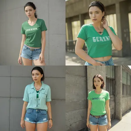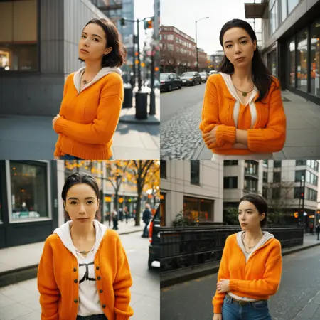 Tends to generate her with a sweater, jacket or hoodie even if specified otherwise.
