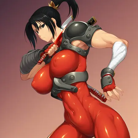 Taki,魂之利刃,忍者,黑发,马尾辫,护甲,红色连体服,渔网袜,格斗家,电子游戏角色,武术,口罩,肩甲,曲线优美,紧身衣,露指手套,战斗角色