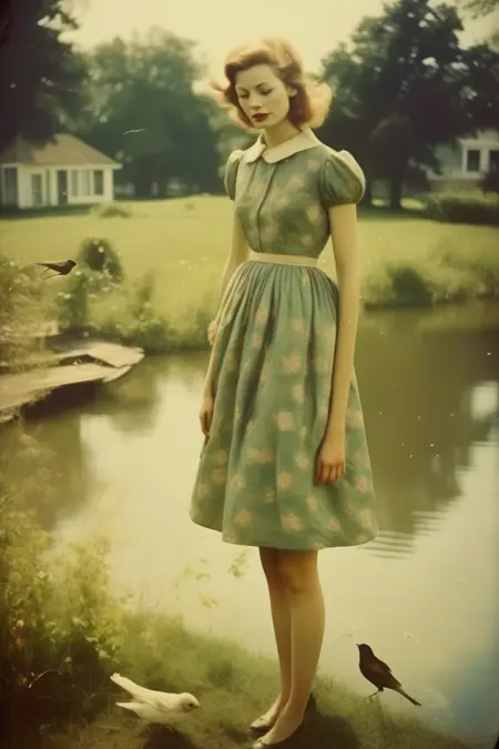 她的影像常常唤起一种复古美学,灵感源自复古时尚、经典电影以及20世纪中期的美国文化。罗滕运用色彩、光影和构图,使她的照片具有强烈的电影质感,定格下仿佛凝固在时间中的瞬间。