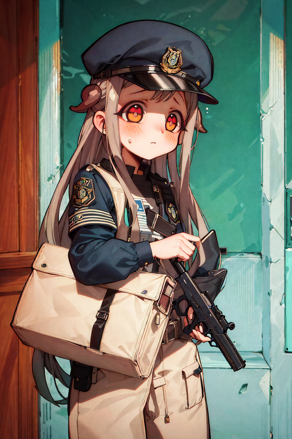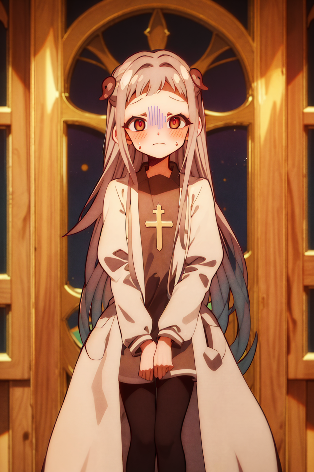 脸上的蓝色线条——尝试添加她情绪波动时常出现的蓝色线条。与“脸颊泛红”组合使用,效果更好。可以将它放在括号()内,以帮助提示词生效。
