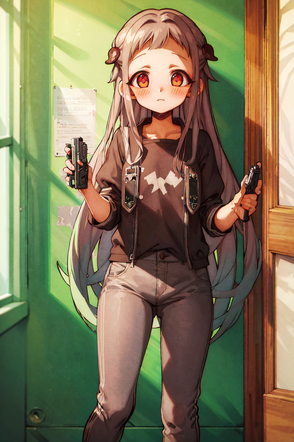 由于我训练时使用的图像中她面部表情非常丰富,因此她表情表现力很强。你需要通过调整权重来控制她做出你想要的效果。