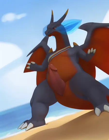"v1_normalfocus", "v1_shinyfocus", "v1_player2focus", and "v1_findigo" version are trained with images made by Mega Charizard X MMD model and chekpoints of "fluffyrock-576-704-832-960-1088-lion-low-lr-e59-terminal-snr-e32" and "Indigo Furry mix v25_anime_niji".