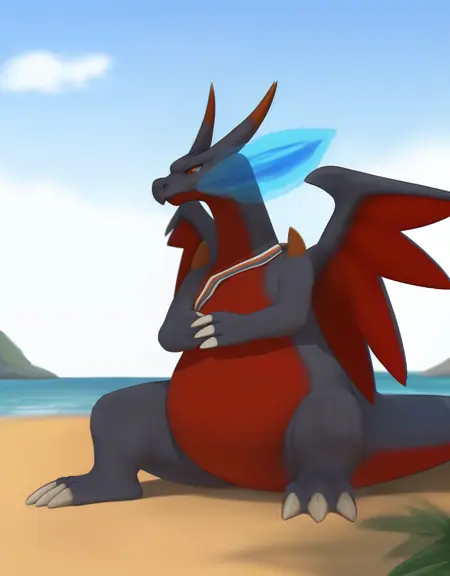 Related words : black skin, grey skin, blue skin, red eyes, brown eyes, bright pupils, white pupils, green skin, red skin, tusks, fangs, fangs out, fang out, claws, dragon boy, dragon tail, flame-tipped tail, flame, blue fire, breathing fire, spread wings, dragon wings, blue wings, red wings, no humans, monster boy, pokemon (creature), shiny pokemon, mega_pokemon, charizard, bandages, sash
