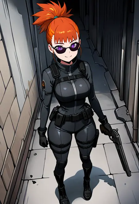 zzRika, 보라색 눈, 주황색 머리, 묶은 머리, 단발,