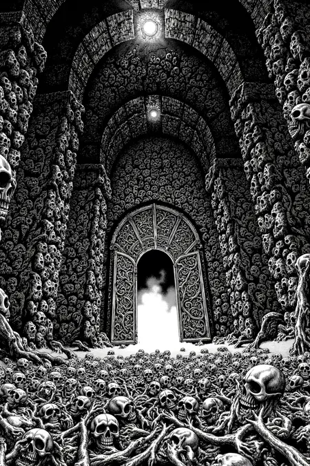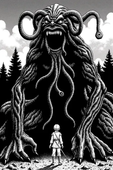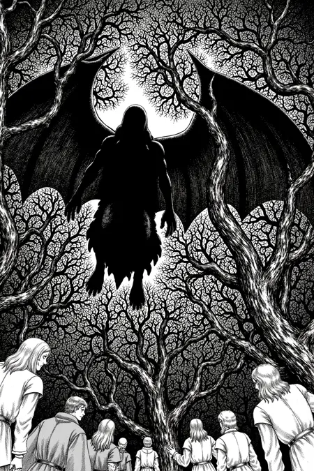 从以下内容开始提示通常能获得不错的效果:'黑白色《剑风传奇》漫画风格图像'