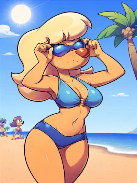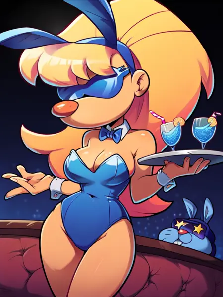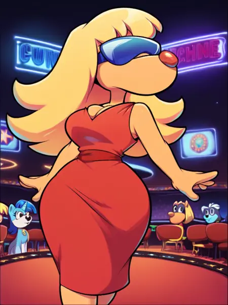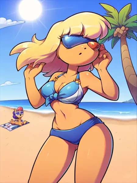 来自一致通过的委员:大脑伪装成蛇蝎美人。相当不错。训练数据中包含无眼镜的版本,但如果你尝试移除眼镜,效果可能因人而异。我重新核对了粉丝艺术作品,发现社区都喜欢佩戴太阳镜的版本,所以我没做改动。如果大家希望调整,我之后可以修改。