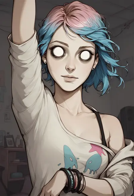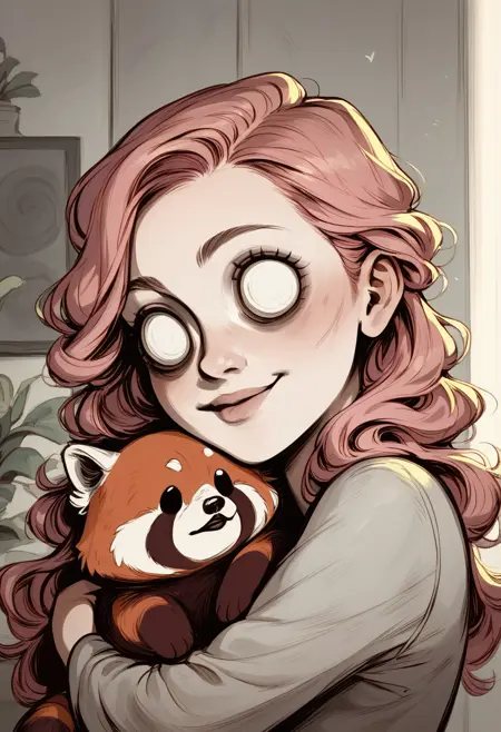 默认情况下,使用触发词 'blank eyes, dontstarvestyle' 生成 2.5D 图像。若希望效果更扁平化,或与其他 LORA、角色、人物搭配使用,可在负向提示词中加入 'photo, render, 3d, cgi'。示例可见于技术帖。触发词 'blank eyes' 起作用,但并非如你所想:事实上,它本身就是风格的名称。数据集中存在其他眼型的变体,但较难实现,而我个人更喜欢如 Wendy 那样的空白眼睛风格。该 LORA 不包含游戏角色名称,因此不会生成《Don't Starve》系列中的特定角色。