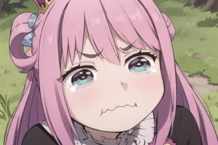 1人の少女、口を閉じている、涙、波打つ口元、目が潤んでいる、ふくれっ面、:i、ミーム、:t、パロディ、眉をひそめる、V字型の眉、泣きそう、悲しそう、目を開けたまま泣いている、腫れた頬 lora:merrytail_aqua_crying_meme_v02-05:0.7
