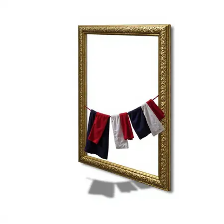 [XXX] breaking the frame, [COLOR] frame on a white background.