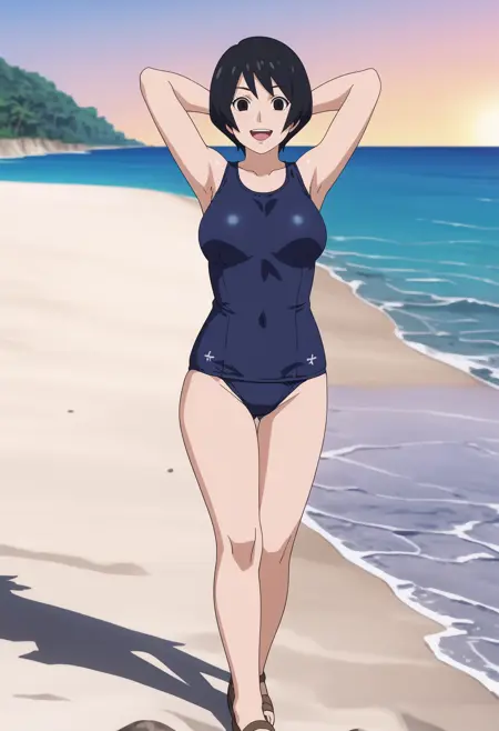 Basic prompts : 1girl, kurotsuchi, black eyes, black hair, short hair
