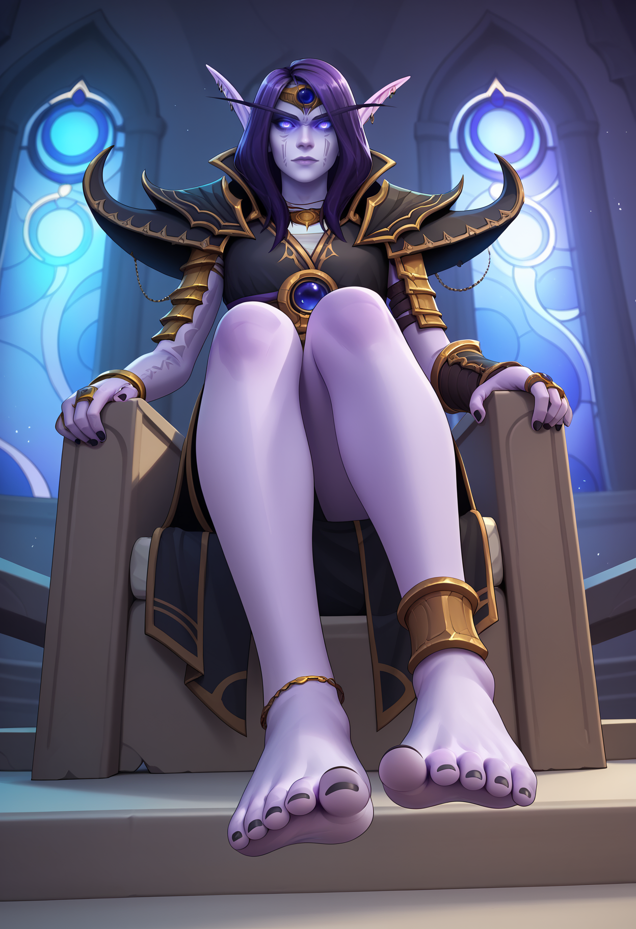 복장 프롬프트: void sphere, anklet, armor, barefoot, bracelet, bracer, floating, pauldrons, piercing, ring, shoulder armor, toe ring, toenails, vambraces