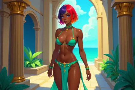 一个动漫数字绘画检查点,色彩普遍较为平坦(角色上稍有不同),配色明快。