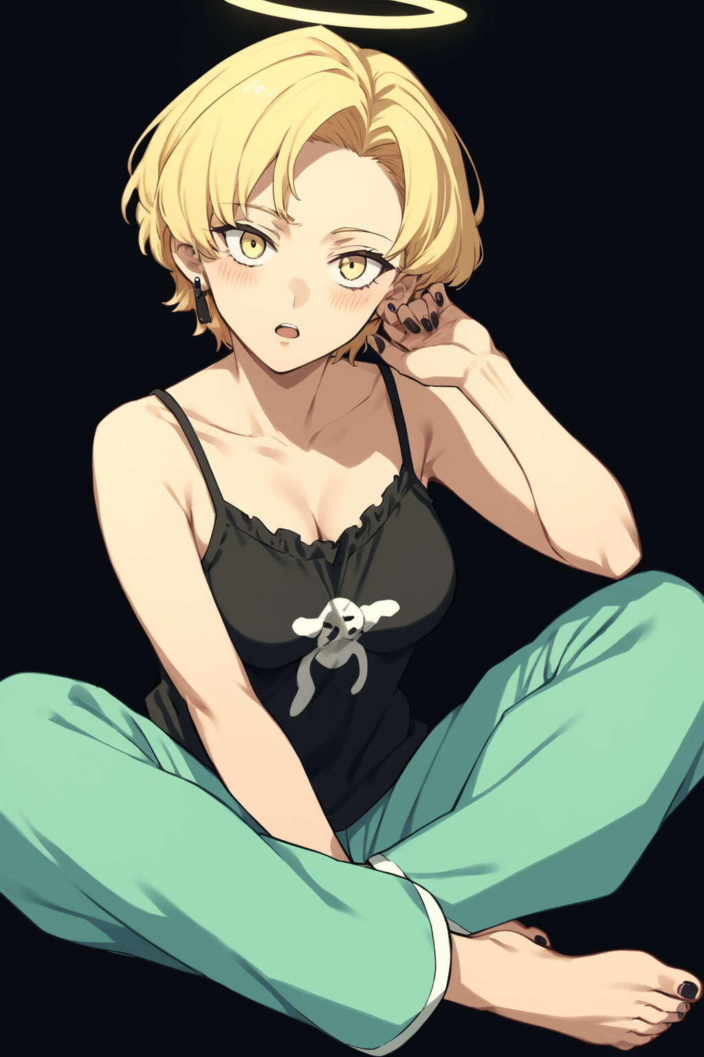 常规外观:光环、金发、短发、黄眼、中等胸部,