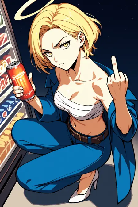 来自《Blue Archive》(ブルーアーカイブ | 블루 아카이브)的持加特林机枪的不良少女 NPC,许多网站上昵称为 Sukeban MG,现在以 LoRA 形式登场。