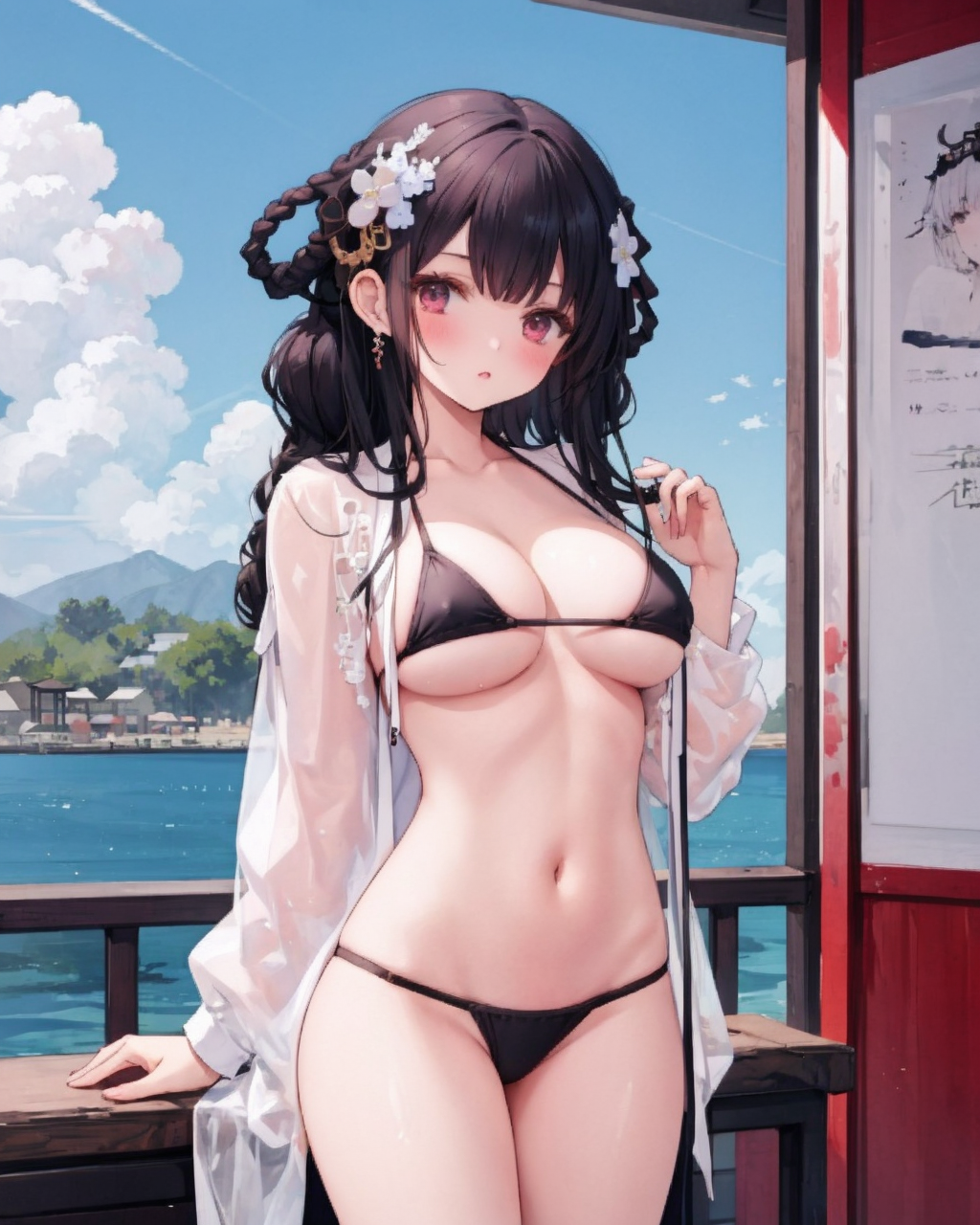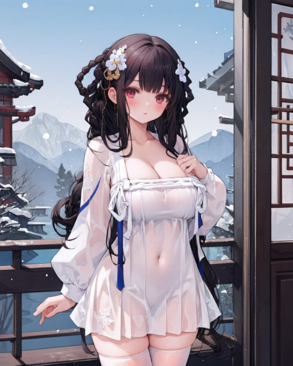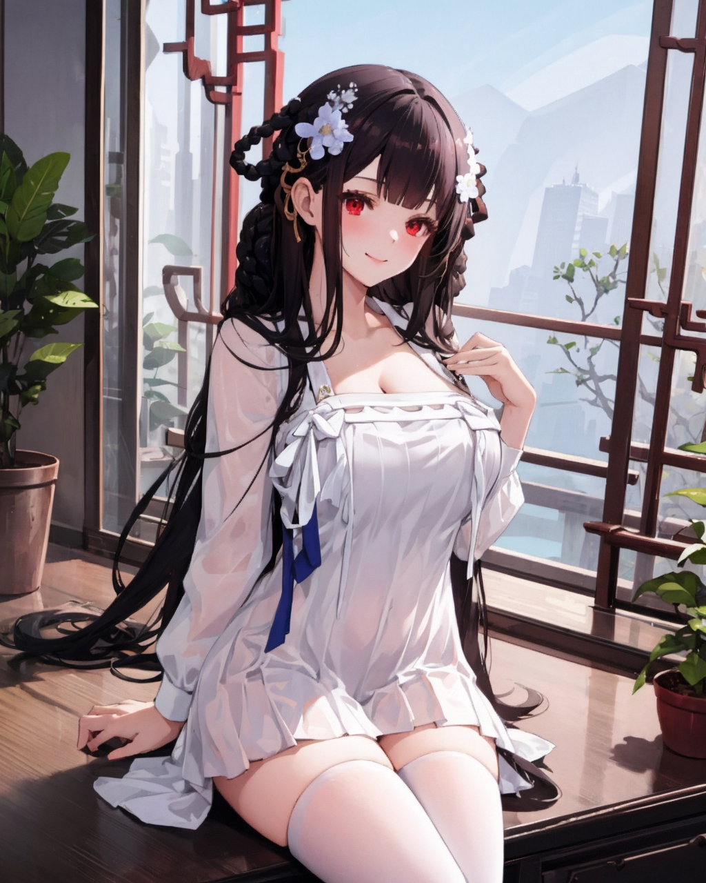 Suggested Prompt(推荐提示词): black hair, white legwear, white_skirt, red eyes……