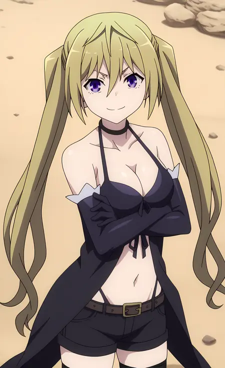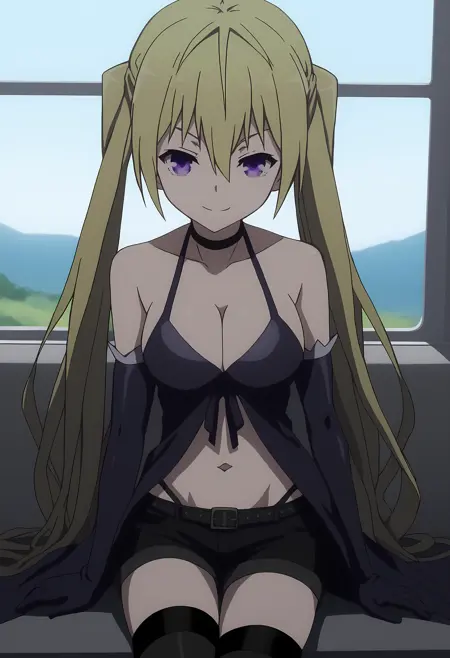 外見 → ohwx, blonde_hair, long_hair, 1girl, twintails, solo, breasts, purple_eyes, large_breasts, medium_breasts, hair_between_eyes, very_long_hair,