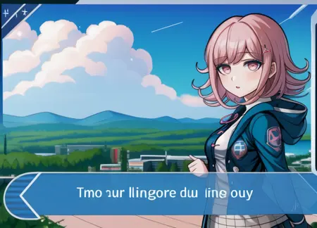 『ダンガンロンパ S』のGUI:テキストは正しく表示されませんが、データセットに含まれる例として提示します。以下のように試すことができます:「danganronpa sprite style, danganronpa gui style, dialogue scene,GUI text, blocky chat box at top left, blocky chat box at image left, blocky chat box with text that reads "CHAPTER 01" / "NIGHTTIME" / "LEVEL 11" at top right, translucent speech window with text that reads "test text", translucent blocky icon button with black "X" at bottom right」