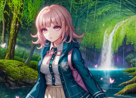 Chiaki Nanami - 『ダンガンロンパ2』およびアニメ『ダンガンロンパ3』に登場する「究極のゲーマー」。このLoRAを使用すると、Chiakiをさまざまなアートスタイルと衣装で描くことができます。