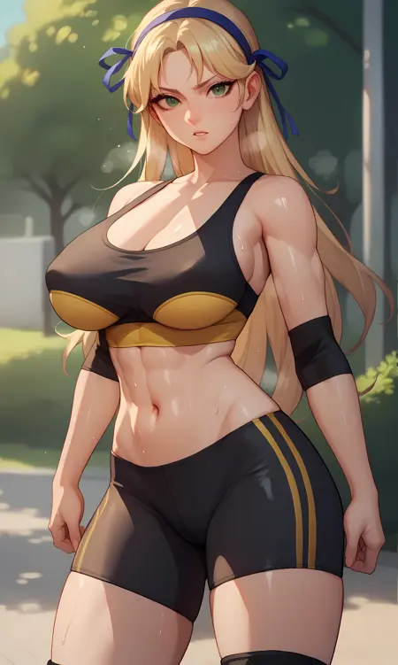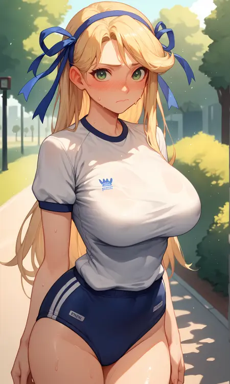 카츠라기, 녹색 눈, 금발, 긴 머리, 파란 머리띠, 파란 리본