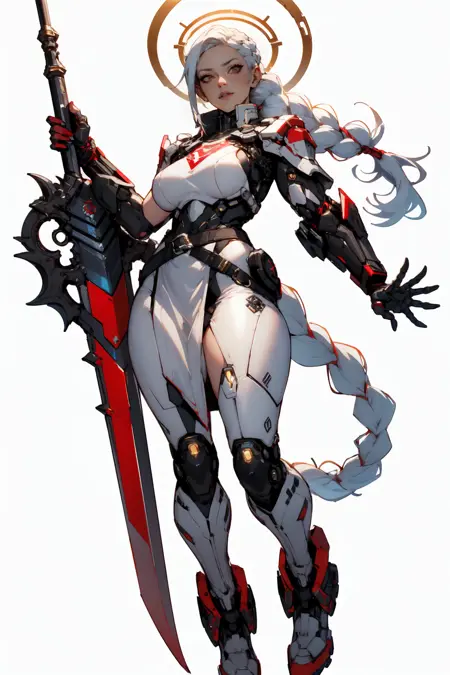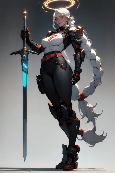 在简洁简短的提示末尾加入outline,可获得更平面化的图像效果。simple background, white background 用于白色背景(显然啦)。(对全身概念图尤其有用)night, dark atmosphere, dark scene 可增强对比度。realistic 可减少扁平感,获得更立体的视觉效果。blurry background, bokeh 可更好地突出角色主体。