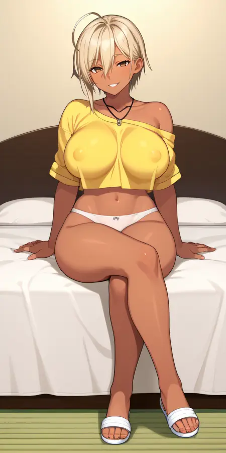 • このモデルは、メイの日焼けした金色の髪の外観を再現するように学習されています。「肌の色を濃くする」プロンプトを削除し、「茶色の髪」プロンプトを使用して実験することはできますが、サイドロックスのヘアスタイルは得られません。
