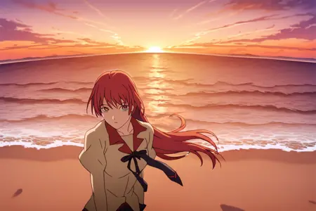 日落光晕氛围提示:bakemonogatari_style,暖橙色调主题,橙色天空
