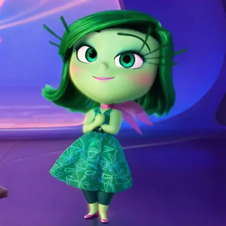 来自电影《头脑特工队》的角色厌恶,如果你想看到类似电影中的“裙子”或“绿色裙子”,以及“高跟鞋”和“绿色紧身裤”,建议使用此提示。