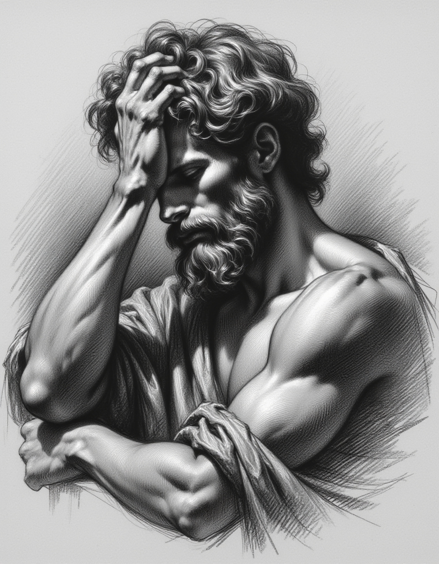 "Renaissance Study Works" is reminiscent of classical Renaissance portraiture and figure studies. This style emphasizes detailed, realistic depictions of the human form, with a focus on anatomical accuracy and emotional depth. Shading and cross-hatching techniques are used to add dimension and texture, creating a sculptural quality to the figures. The lighting typically highlights the contours of the body and face, with soft yet dramatic contrasts between light and shadow.