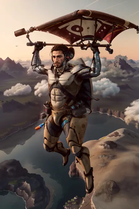 손을 위로 들고, 공중에서 비행 중, 손으로 잡고 있어, 양손으로 잡고 있어, 와이드 셔트, 벌크 바디, 전면/측면/후면 보기