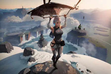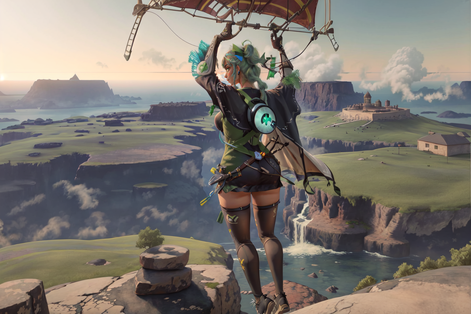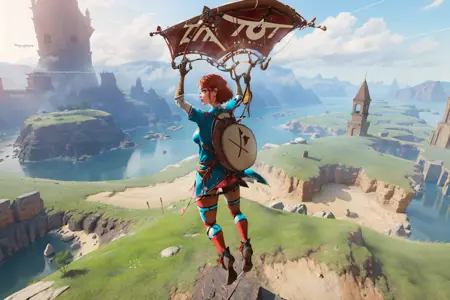 arms up, flying, in the air, holding, holding with both hands, wide shot, full body, frontview/sideview/backview
