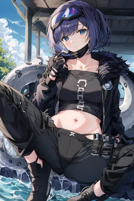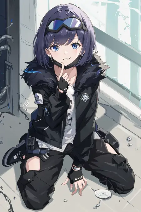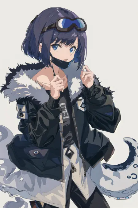 2.OG Costume: mask,shirt,fur-trimmed jacket,open clothes, fingerless gloves, open jacket, black shirt