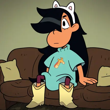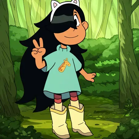 maney_cotc, black hair, long hair, fake animal ears, shirt, hair over one eye, boots