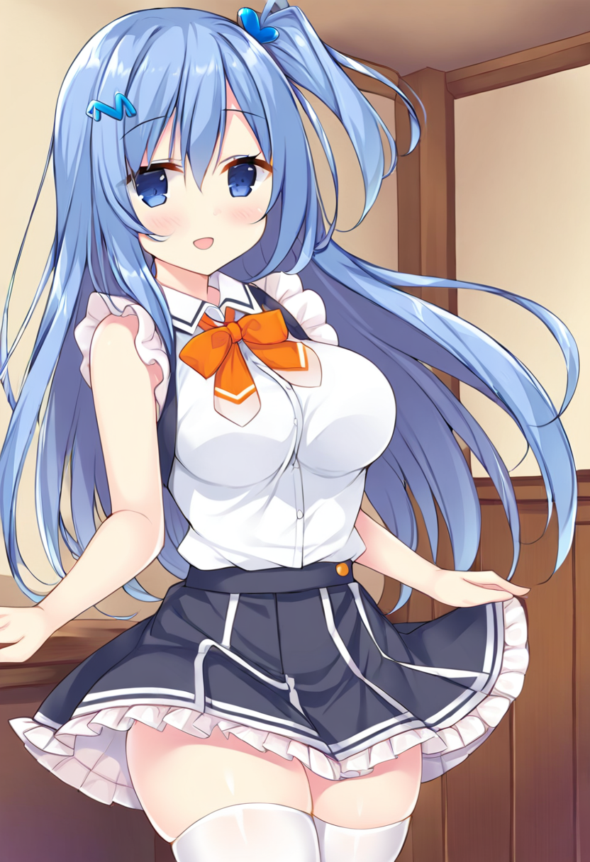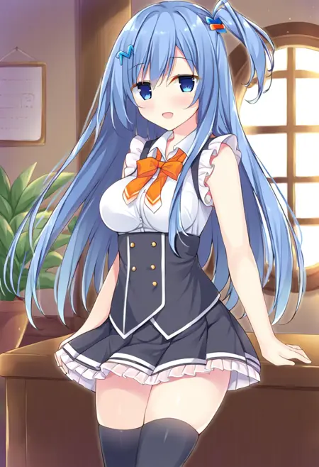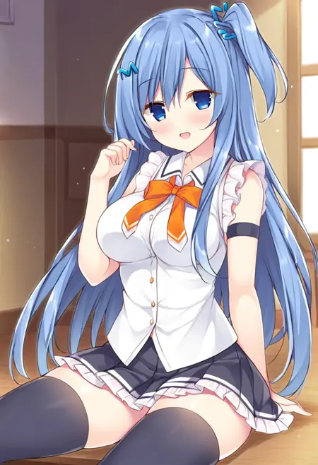 主要プロンプト: emori miku、青い目、青い髪、目と目の間の髪