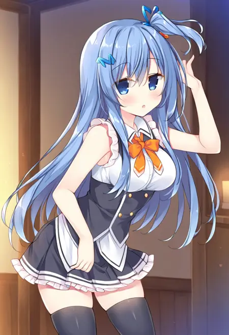 オプションのキャラクター特徴プロンプト: 片側を上げる、長い髪、非常に長い髪