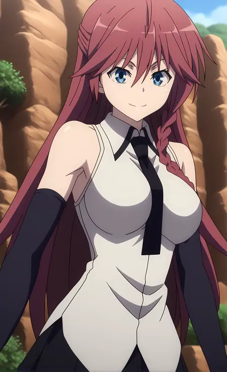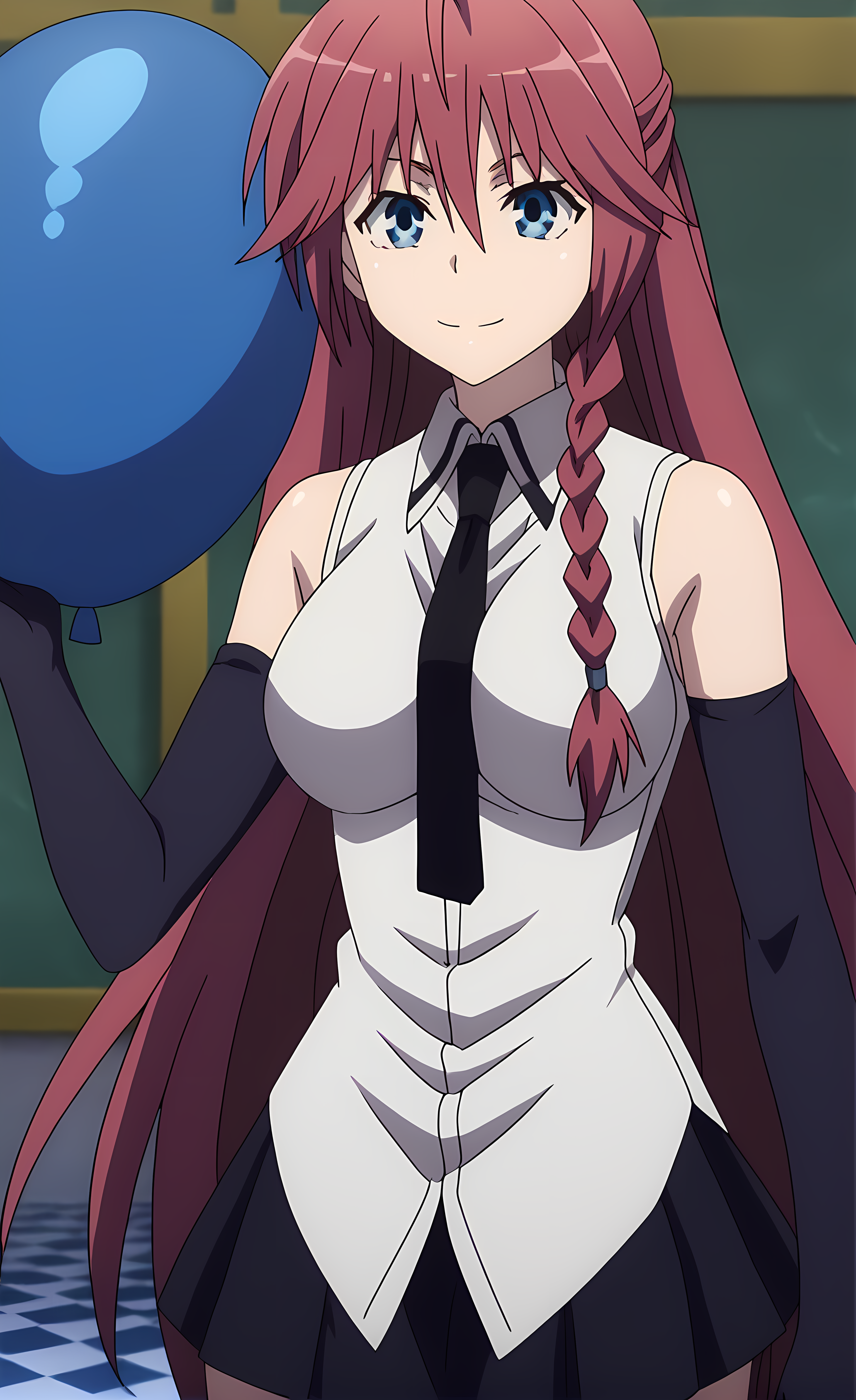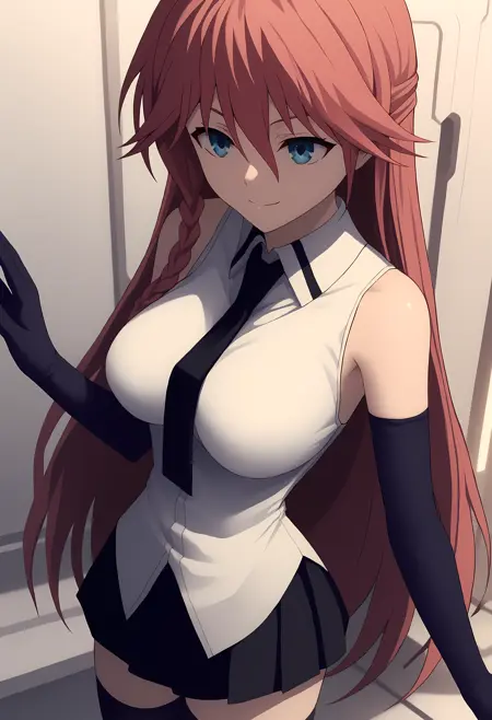 Appearance → ohwx, long_hair, 1girl, red_hair, braid, solo, blue_eyes, breasts, hair_between_eyes, side_braid, large_breasts, medium_breasts,