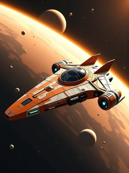 宇宙船、キャラクター、車両などに対するスリムでSF的な外観。