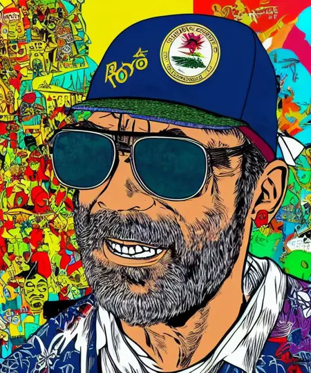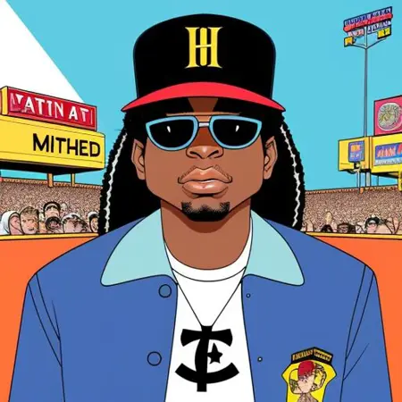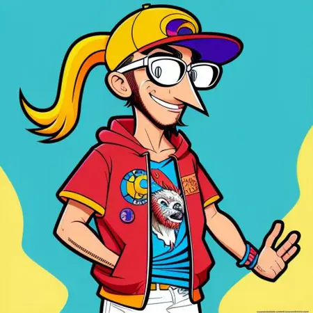 cartoon drawing of __gonzo/people/hiphop__ , trending on artstation, HD, ((high quality)), vibrant color scheme, character design