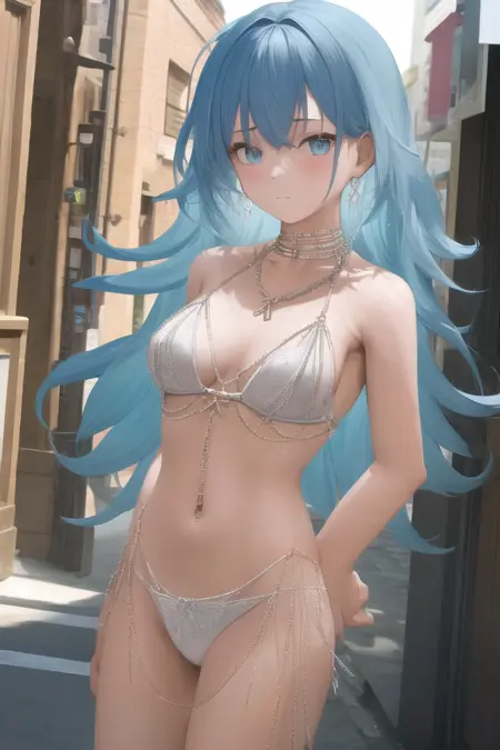 3、4图(到处都有链条):正常使用即可,但会受tag影响,比如使用outdoors、streets等tag可能会大大减少环境中的链条(如图5,但腹部链条也往往较少)。