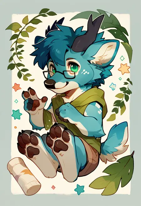 📝 可选/Опционально: 蓝色毛发,绿色眼睛,角,短尾,眼镜,爪垫/蹄子**