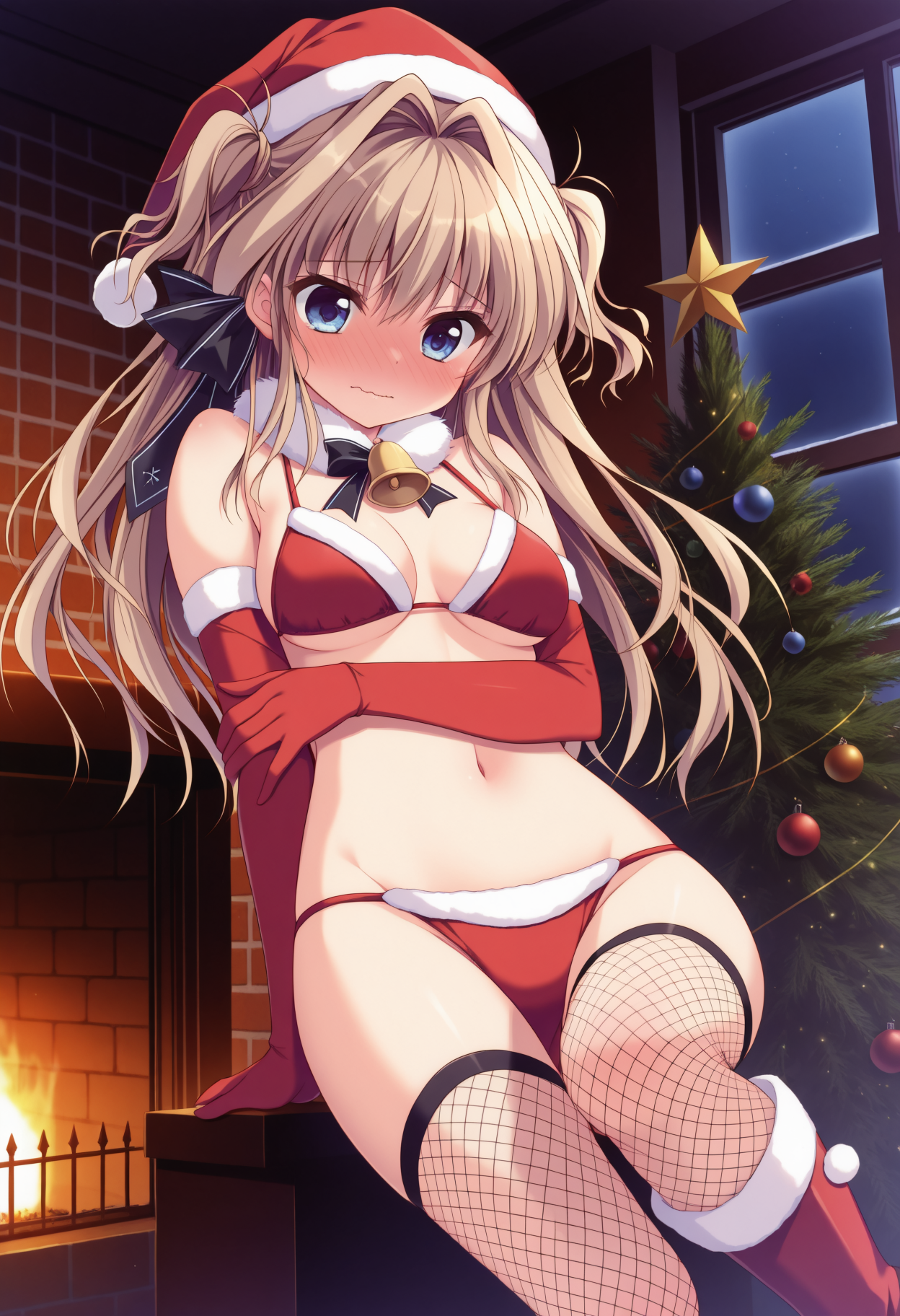 金髪、サイドアップ、髪の毛の流入、青い目、長い髪、中程度の胸、