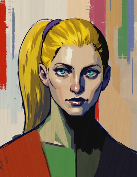 트리거 단어는 필요 없고, 추상적인 초상화, 추상적인 배경, 강한 붓터치, 표현주의만 요청해도 작동함.
