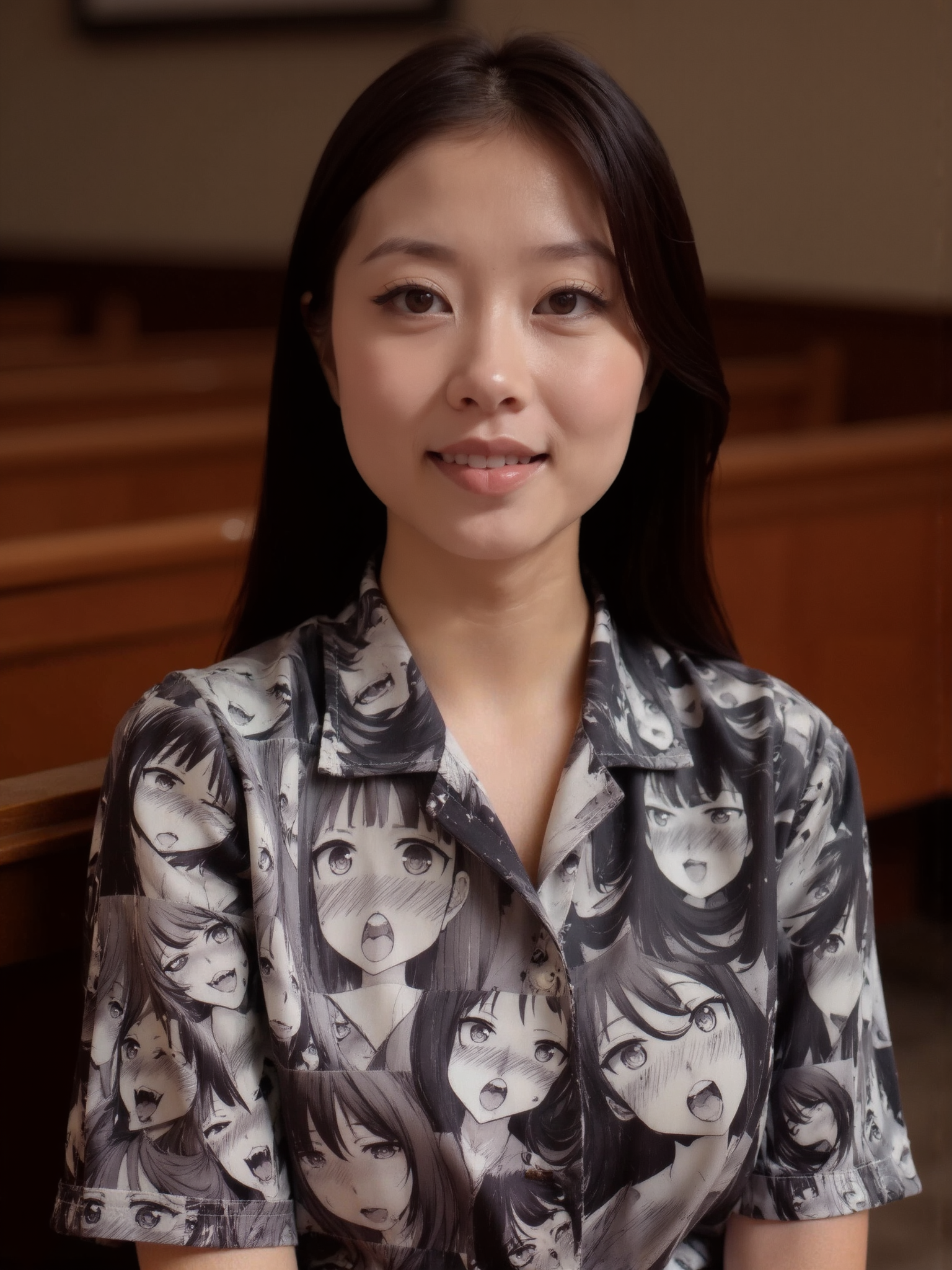 이것은 실험으로 만들었습니다. "ahegao_pattern이 그려진/그린 것" 같은 단어를 사용하여 패턴을 다양한 물체에 적용할 수 있습니다.