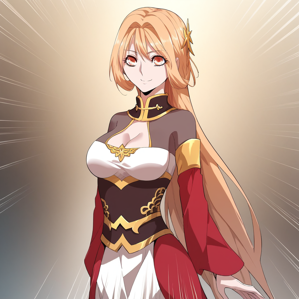 Luoyun-chang, 1girl, solo, blonde hair, orange eyes, large breasts,