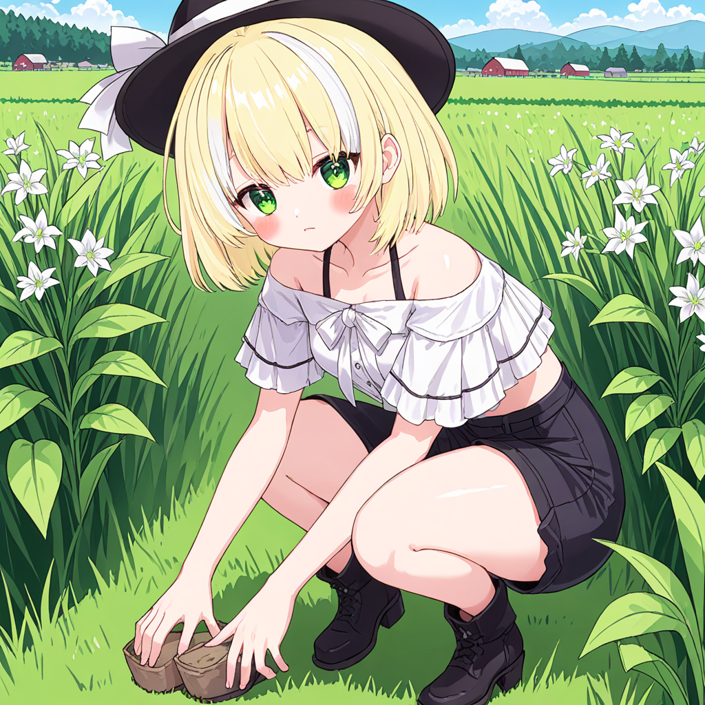 FlatpieceCoreXL と FlatpieceXL VAE を使用して学習。重み0.6を推奨。服に複数のリボンが生成される可能性が高い。
