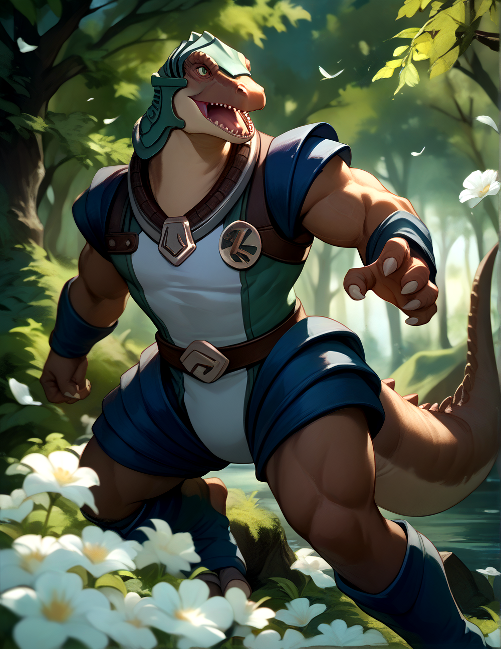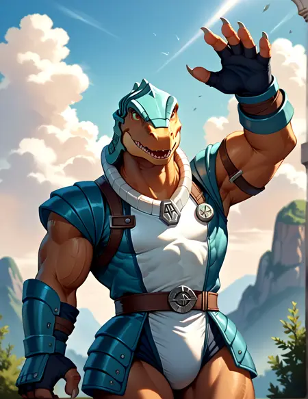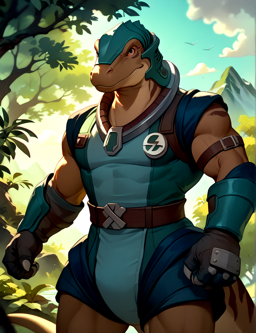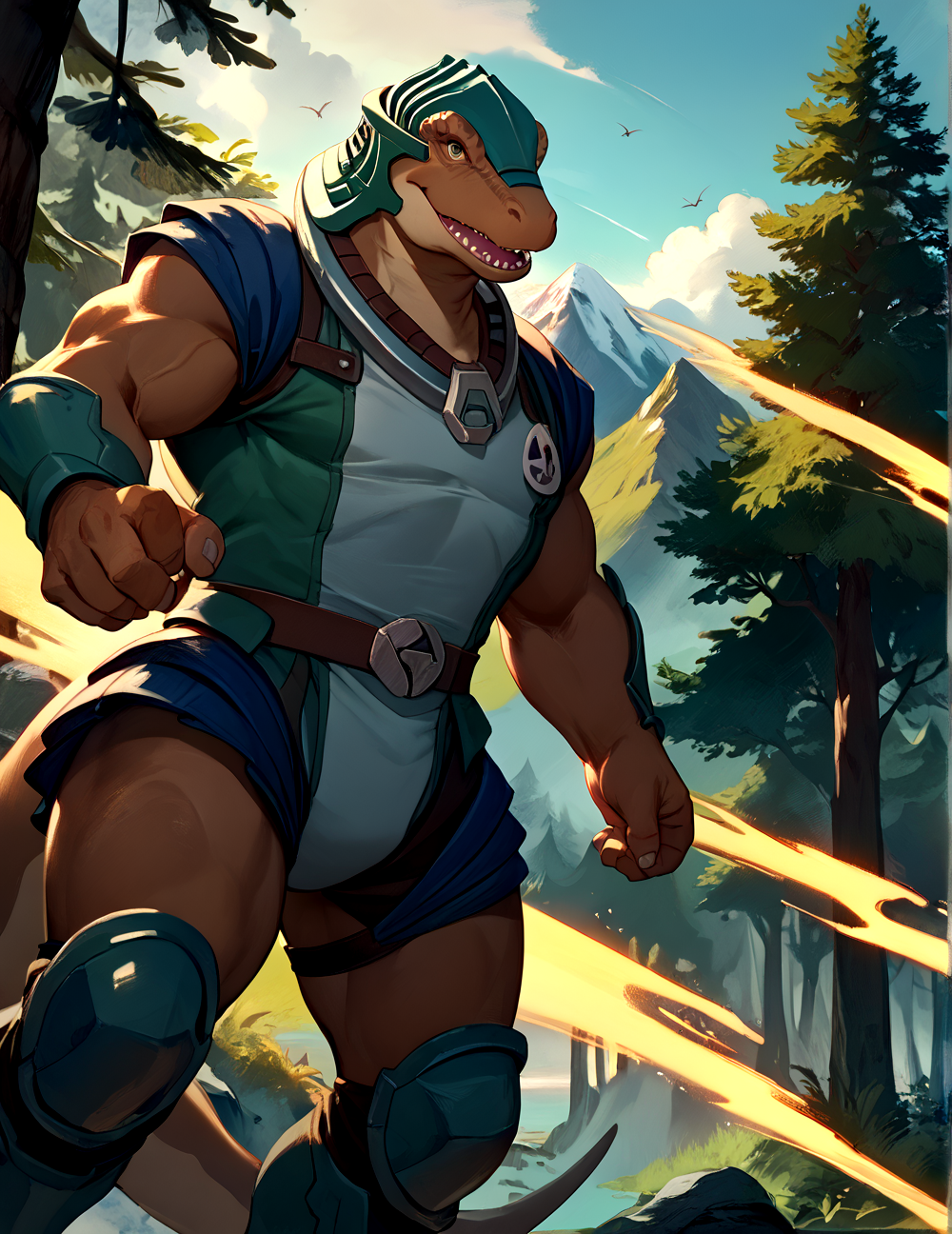 이 모델의 프롬프트는 Allo, Dinosaucers, 공룡, 근육질, 갑옷, 가슴 갑옷, 갈색 피부입니다.