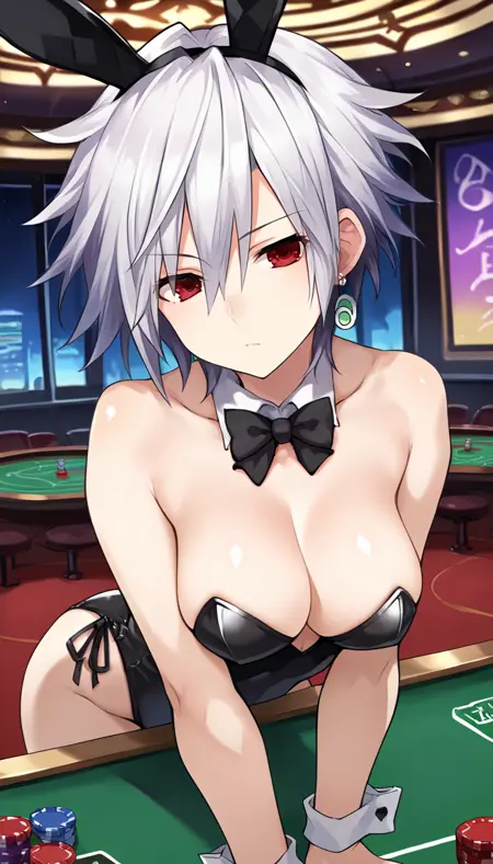 Appearance: S-Sha \(neptunia)\, sliver hair, short hair, red eyes